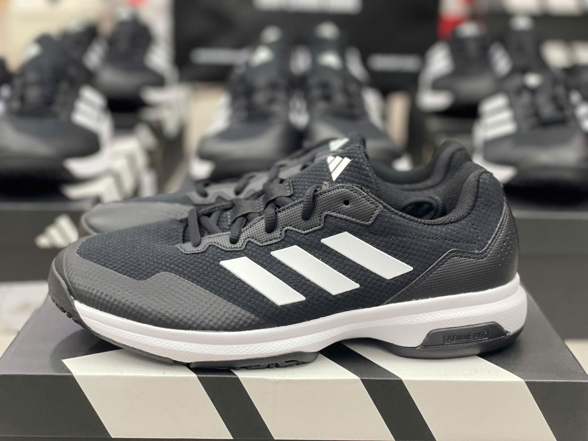 Giày sở hữu phối màu đen – trắng cổ điển, mạnh mẽ và dễ phối với nhiều trang phục thể thao khác nhau. Kiểu dáng gọn gàng, năng động, mang đậm phong cách thể thao đặc trưng của adidas, phù hợp cho cả nam và nữ.