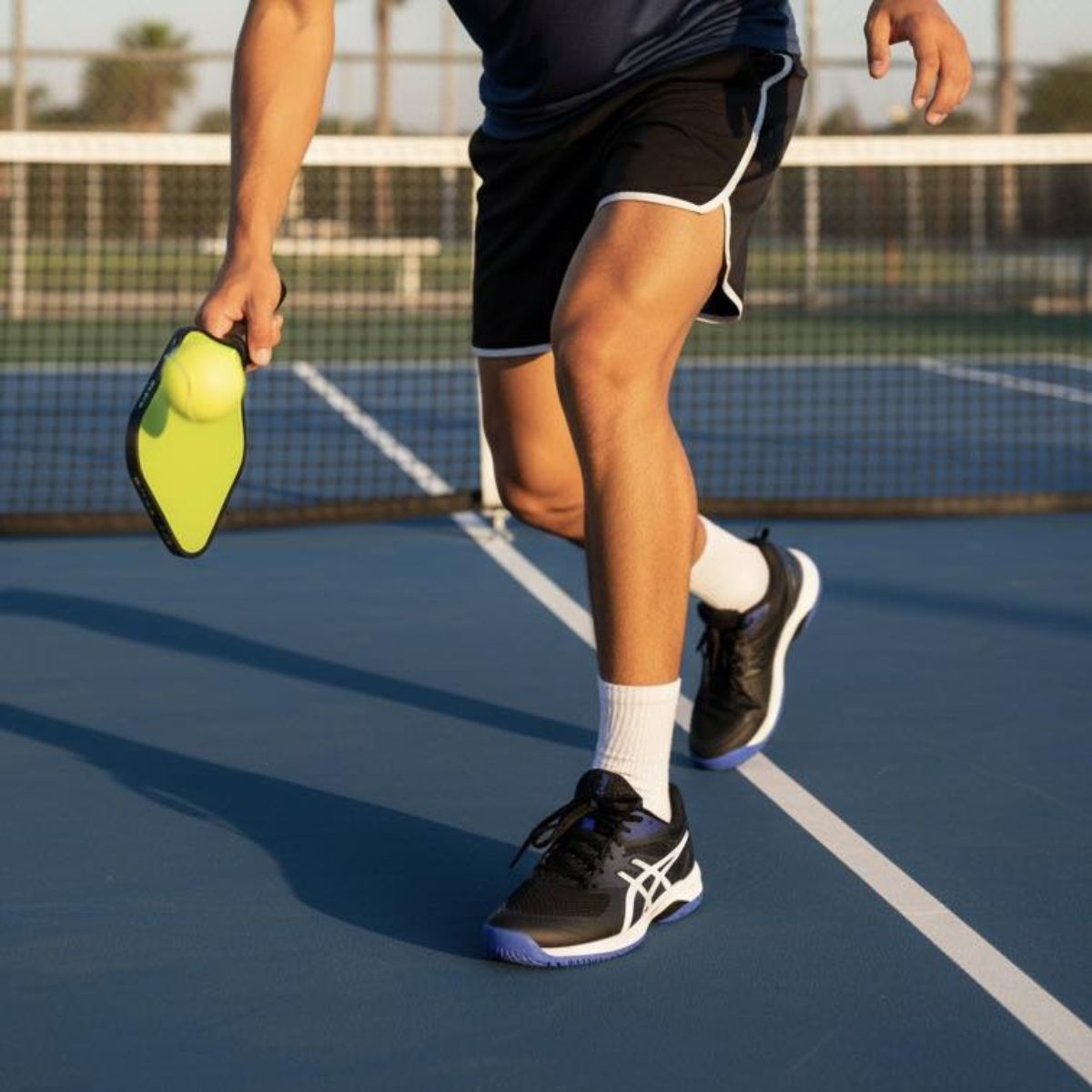 Giày Asics Game FF 'Black/White' (1041A489-001) là mẫu giày tennis/pickleball đa năng, nhẹ và linh hoạt, nổi bật với upper lưới thoáng khí, đệm FLYTEFOAM™ êm ái, hỗ trợ chuyển động nhanh và ổn định nhờ công nghệ TRUSSTIC, cùng đế ngoài cao su AHAR+ siêu bền, lý tưởng cho người chơi ở mọi trình độ cần sự thoải mái, bám sân và hỗ trợ chuyển hướng trên nhiều mặt sân.