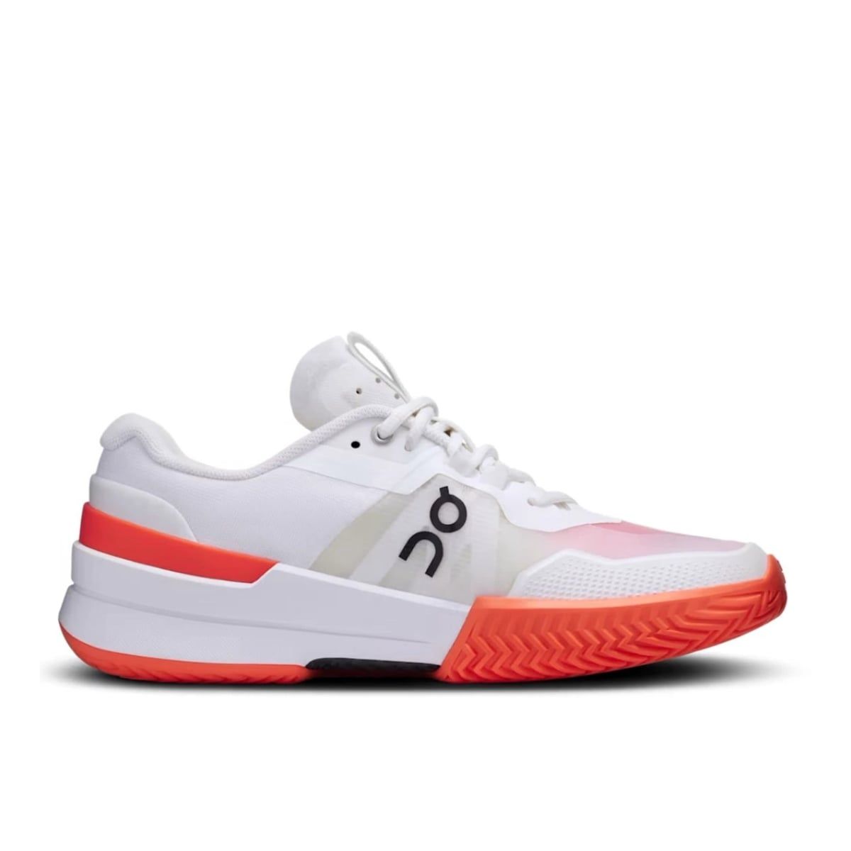 On Roger Pro 2 Clay ‘White Flame’ (3WE10330256) là mẫu giày tennis cao cấp dành cho sân đất nện, hợp tác giữa On và Roger Federer, phù hợp với các vận động viên nữ yêu thích tốc độ và sự linh hoạt. Upper lưới siêu nhẹ, chống mài mòn và thoáng khí giúp chân luôn khô ráo. Cấu trúc half-bootie cùng khung TPU bên hông mang lại độ ổn định và hỗ trợ chắc chắn. Đế giữa foam hấp thụ lực tốt, giảm áp lực khi thi đấu kéo dài. Đế ngoài xương cá mở bám sân hiệu quả và hỗ trợ trượt kiểm soát. Phối màu trắng – cam nổi bật, form hơi ôm mũi nên chân rộng cân nhắc tăng nửa size.