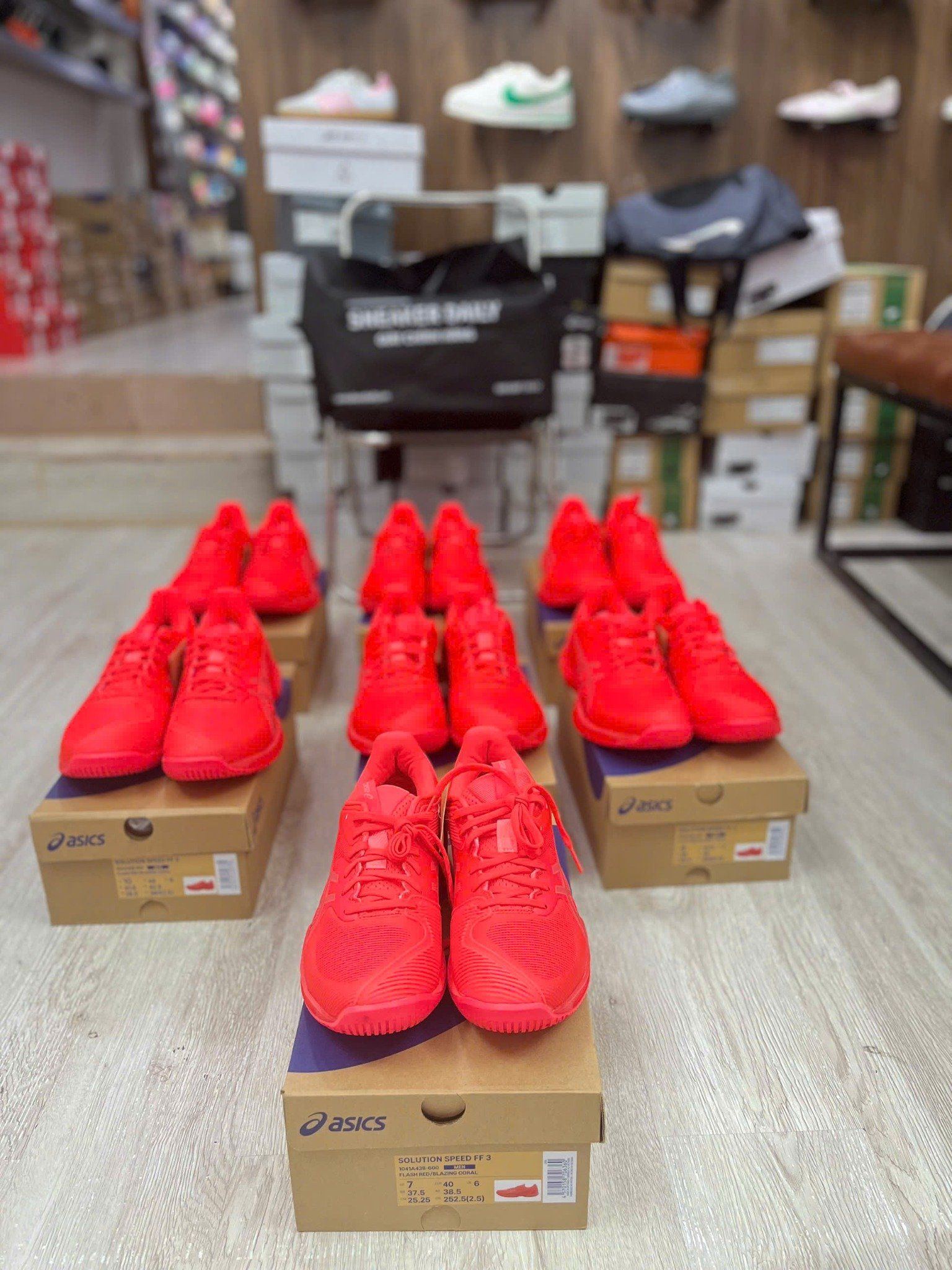 Asics Solution Speed FF 3 Clay ‘Flash Red’ là mẫu giày tennis cao cấp dành cho mặt sân đất nện (clay), nổi bật với thiết kế hiện đại và tông màu đỏ rực mạnh mẽ. Đây là phiên bản nâng cấp trong dòng Solution Speed, hướng đến người chơi có lối đánh nhanh, di chuyển linh hoạt và cần độ bám sân tốt.