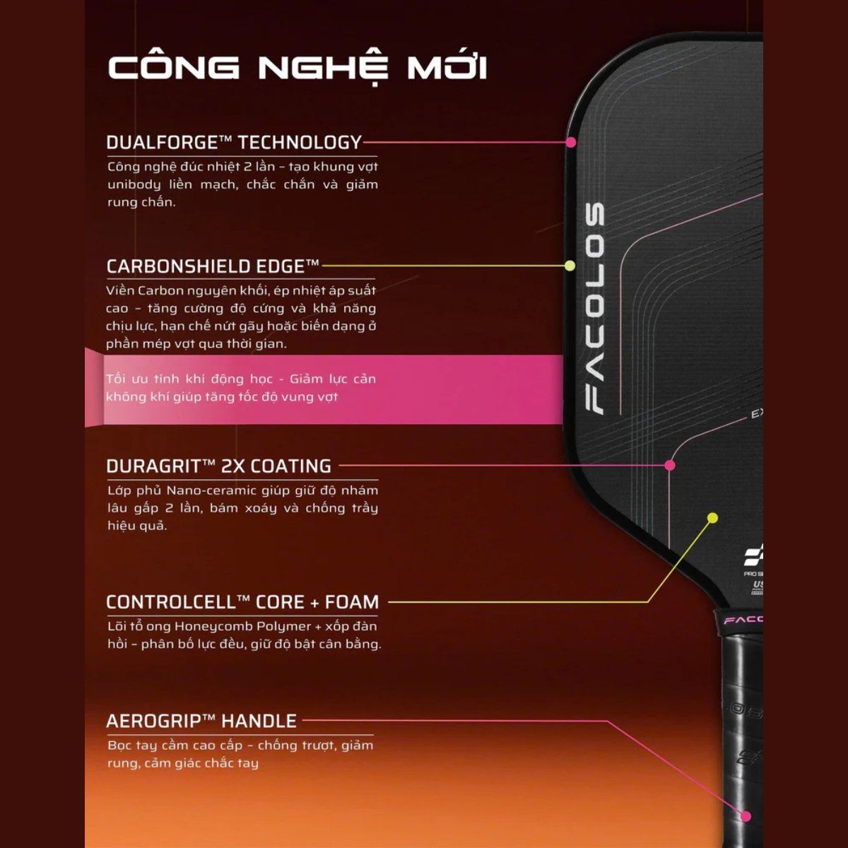Thông tin sản phẩm Vợt Pickleball Facolos Pro Series Hybrid 2.0 14-16mm