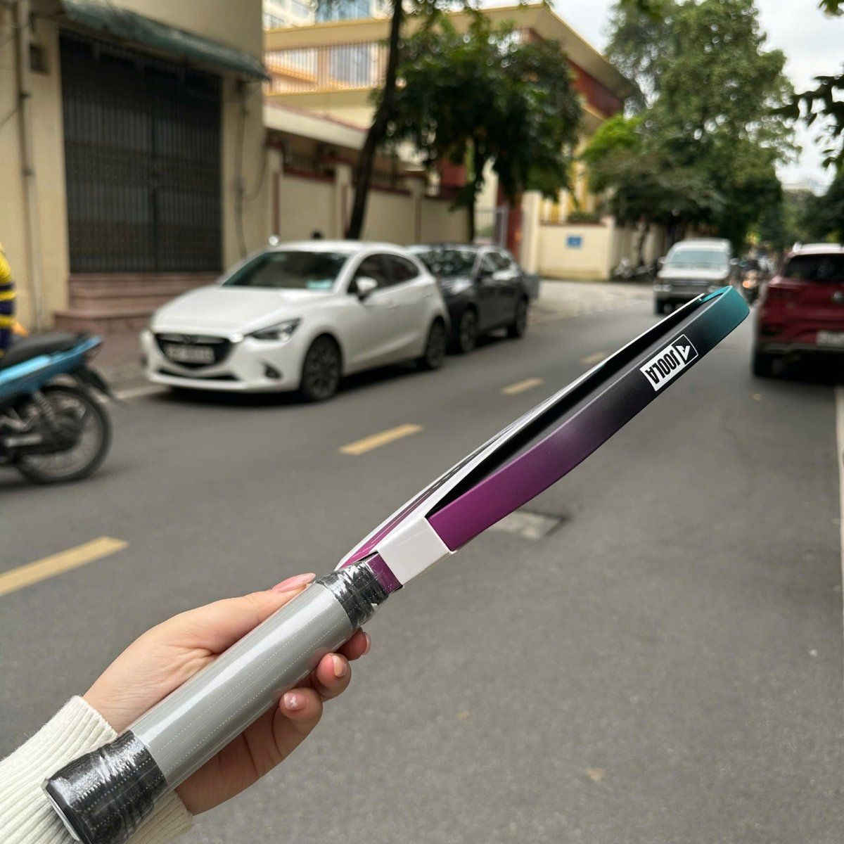 Ngay từ cái nhìn đầu tiên, Perseus 3S Dual gây ấn tượng mạnh với dải màu gradient tím – xanh – đen đầy cuốn hút và tràn đầy năng lượng. Thiết kế không chỉ thể hiện sự tinh tế trong thẩm mỹ mà còn toát lên phong cách hiện đại và đẳng cấp, giúp người chơi trở nên nổi bật và khác biệt trên mỗi đường bóng.